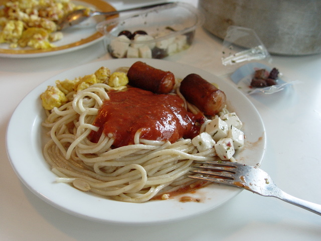 北歐是著名的高福利高稅收的國家。對觀光客而言,福利我們是享不到,但稅還是要照扣的。挪威的消費稅印象中沒錯是話是25%,若在同一間店消費超過N元(N等於幾我忘了)的話,就可以享有退稅優惠。在這邊我們幾乎是每天開伙,去超市買義大利麵&醬,在hostel裡的guest kitchen自己煮。也因為每天都吃意大利麵,害我回台灣後好長一段時間對意大利麵倒盡胃口。順帶一提,照片裡白色方塊狀的物體是醃乳酪,我一時好奇買來吃吃看的,結果無比難吃.........