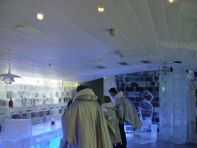 Ice Bar是名符其實的Ice bar,整間酒吧像是吧檯啦、椅子啦、甚至酒杯都是用冰作成的。我在台灣survey時就很想到這裡玩了,順便在Absolute Vodka的原產地喝喝看道地的Vodka長什麼樣子,只是實際到了這間酒吧時,才發現超小一間的(大概十坪大吧),而且還得事先預約才進得去。雖然我有預約隔天的位子,不過後來我沒有去。